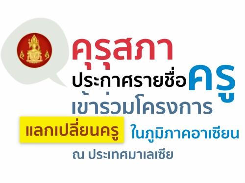 คุรุสภาประกาศรายชื่อครูเข้าร่วมโครงการแลกเปลี่ยนครูในภูมิภาคอาเซียน ณ ประเทศมาเลเซีย