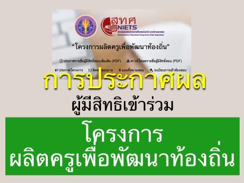 การประกาศผลผู้มีสิทธิเข้าร่วมโครงการผลิตครูเพื่อพัฒนาท้องถิ่น