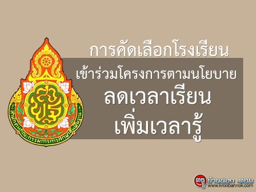 การคัดเลือกโรงเรียนเข้าร่วมโครงการตามนโยบาย ลดเวลาเรียน เพิ่มเวลารู้