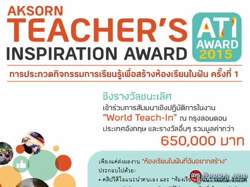ขอเชิญเข้าร่วมโครงการการประกวดกิจกรรมการเรียนรู้เพื่อสร้างห้องเรียนในฝัน ครั้งที่ 1 (ATI Award 2015)