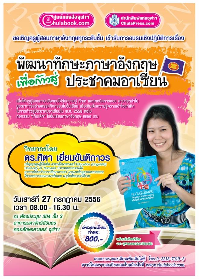 เชิญเข้าร่วมโครงการอบรมครูผู้สอนภาษาอังกฤษ หัวข้อ พัฒนาทักษะภาษาอังกฤษ เพื่อก้าวสู่ประชาคมอาเซียน