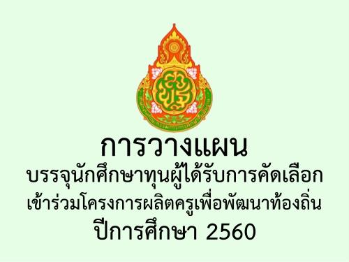 การวางแผนบรรจุนักศึกษาทุนผู้ได้รับการคัดเลือกเข้าร่วมโครงการผลิตครูเพื่อพัฒนาท้องถิ่น ปีการศึกษา 2560