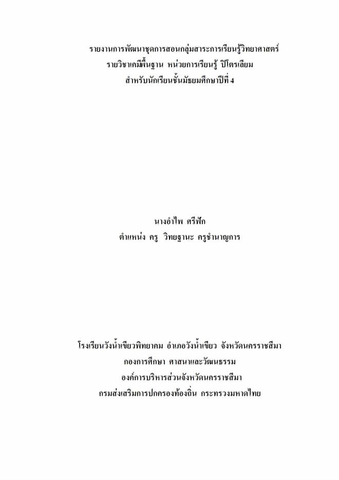 รายงานการพัฒนาชุดการสอนวิทยาศาสตร์ รายวิชาเคมีพื้นฐาน ผลงานครูอำไพ ศรีฟัก