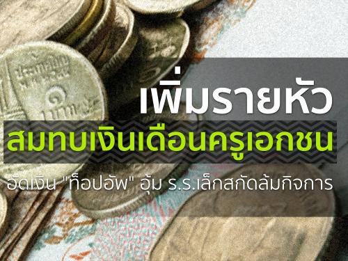 กางร่างการคำนวณบัญชีเงินเดือนครูแบบใหม่ อ่านต่อคลิก[19 มิ.ย. 2560](อ่าน 194,116 ครั้ง) (0.51%-314 ผู้โหวต) | ครม.อุดหนุนเงินเดือนครูเอกชน อ่านต่อคลิก[10 พ.ค. 2560](อ่าน 15,316 ครั้ง) (0.51%-314 ผู้โหวต) |
