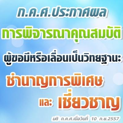 ผลการพิจารณาคุณสมบัติผู้ขอเลื่อนวิทยฐานะชำนาญการพิเศษและเชี่ยวชาญ (มติก.ค.ศ. 24พ.ย.2557)