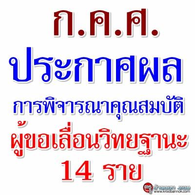 ก.ค.ศ.ประกาศผลการพิจารณาคุณสมบัติผู้ขอเลื่อนวิทยฐานะชำนาญการพิเศษและเชี่ยวชาญ14 ราย