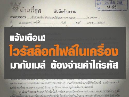 ดีเอสไอเตือนชาวเน็ต!! ระวังติดอีเมล์ไวรัสเรียกค่าไถ่