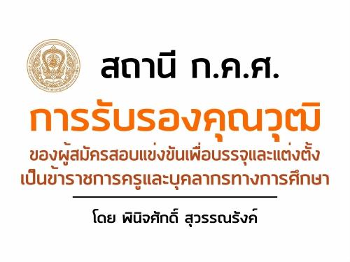 คอลัมน์ สถานี ก.ค.ศ. การรับรองคุณวุฒิของผู้สมัครสอบแข่งขันเพื่อบรรจุและแต่งตั้งเป็นข้าราชการครูและบุคลากรทางการศึกษา : โดย พินิจศักดิ์ สุวรรณรังค์