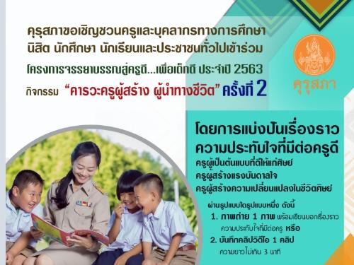 คุรุสภาจัดโครงการจรรยาบรรณสู่ครูดีเพื่อเด็กดี ประจำปี 2563 "คารวะครูผู้สร้าง ผู้นำทางชีวิต"