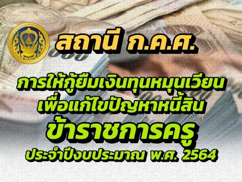 สถานี ก.ค.ศ.การให้กู้ยืมเงินทุนหมุนเวียนเพื่อแก้ไขปัญหาหนี้สินข้าราชการครู ประจำปีงบประมาณ พ.ศ. 2564