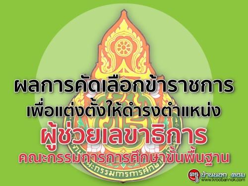 ผลการคัดเลือกข้าราชการเพื่อแต่งตั้งให้ดำรงตำแหน่งผู้ช่วยเลขาธิการคณะกรรมการการศึกษาขั้นพื้นฐาน