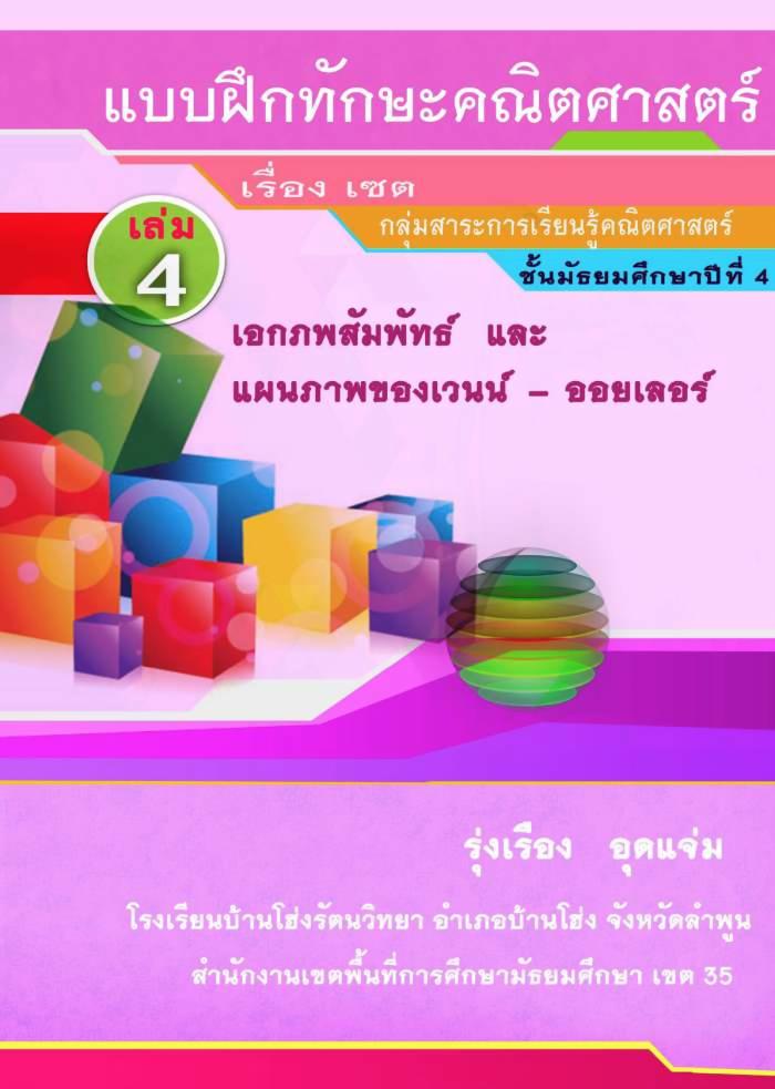 แบบฝึกทักษะคณิตศาสตรเรื่อง เซต เล่มที่ 4 เอกภพสัมพัทธ์และแผนภาพเวนน์ – ออยเลอร์ ผลงานครูรุ่งเรือง อุดแจ่ม