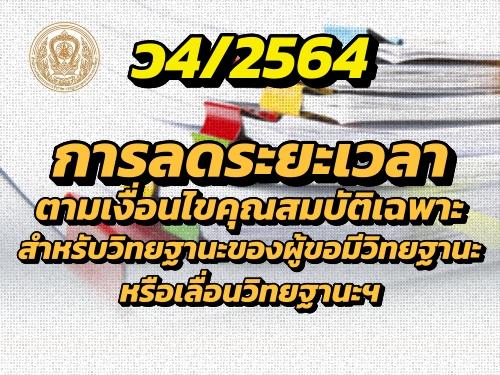 ว4/2564 การลดระยะเวลาตามเงื่อนไขคุณสมบัติเฉพาะสำหรับวิทยฐานะของผู้ขอมีวิทยฐานะหรือเลื่อนวิทยฐานะ