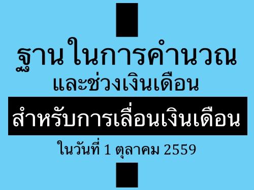 ฐานในการคำนวณและช่วงเงินเดือนสำหรับการเลื่อนเงินเดือนในวันที่ 1 ตุลาคม 2559