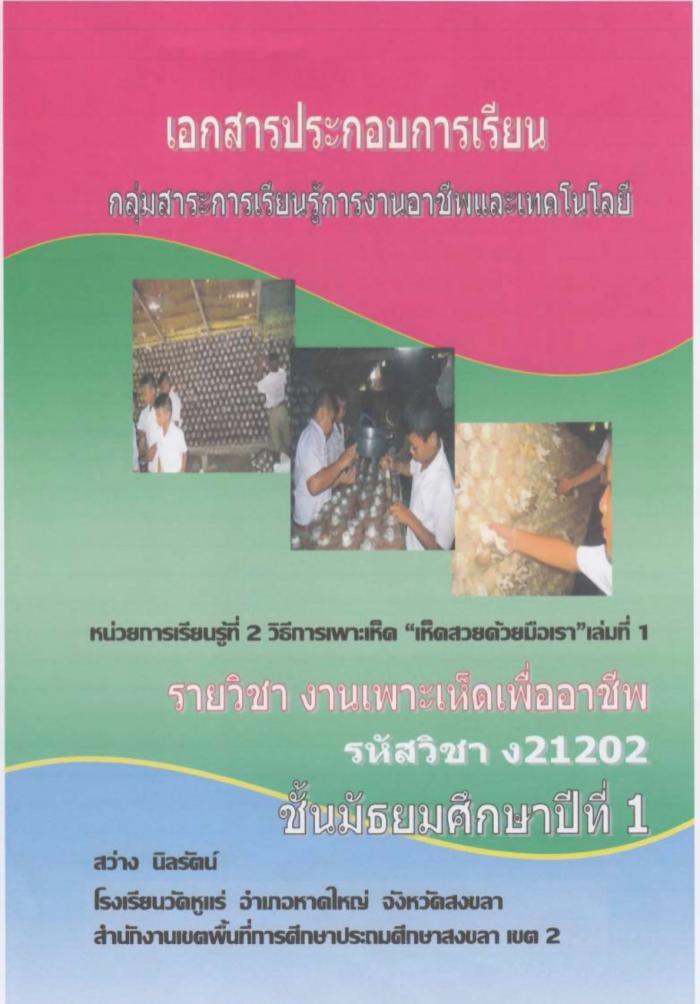 เอกสารประกอบการเรียน วิธีการเพาะเห็ด "เห็ดสวยด้วยมือเรา" เล่มที่ 1 ผลงานครูสว่าง นิลรัตน์