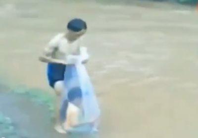 ชมคลิป ยอดคุณพ่อเวียดนามจับลูกใส่ถุงพลาสติก พาลุยน้ำท่วมไปโรงเรียน