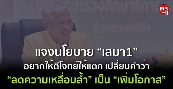 "ปลัด ศธ." แจงนโยบาย "เสมา1" อยากให้ตีโจทย์ให้แตก เปลี่ยนคำว่า "ลดความเหลื่อมล้ำ" เป็น "เพิ่มโอกาส"