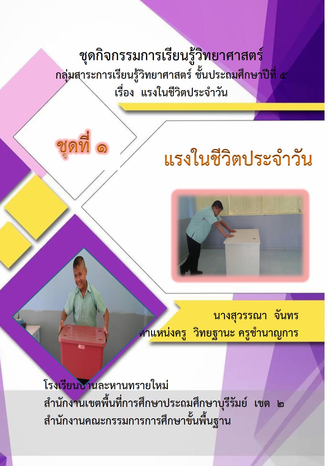 ชุดกิจกรรมการเรียนรู้วิทยาศาสตร์ เรื่อง แรงในชีวิตประจำวัน ชั้นประถมศึกษาปี ที่ 5 โดยใช้การจัดการเรียนรู้แบบสืบเสาะหาความรู้ 5E ผลงานครูสุวรรณา จันทร