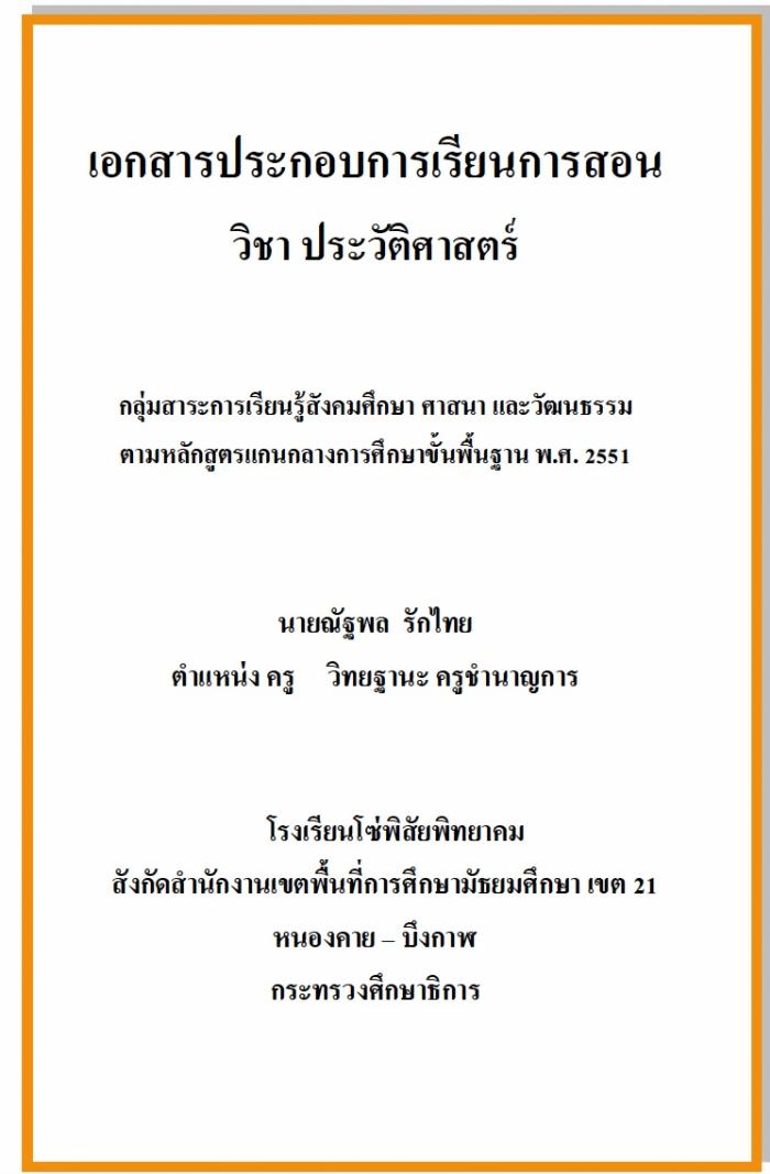 เอกสารประกอบการเรียนการสอน วิชา ประวัติศาสตร์ ระดับชั้นมัธยมศึกษาปีที่ 1 ผลงานครูณัฐพล รักไทย