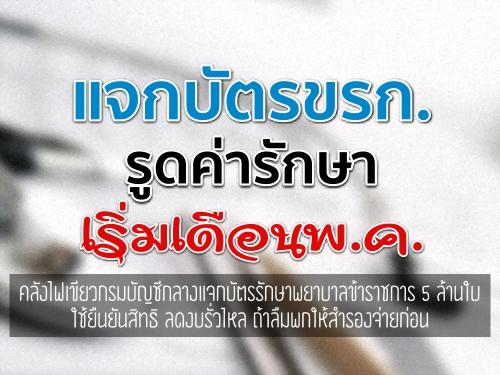 แจกบัตรขรก.รูดค่ารักษา เริ่มเดือนพ.ค. อ่านต่อคลิก[11 ก.พ. 2560](อ่าน 128,830 ครั้ง) (0.51%-314 ผู้โหวต) |