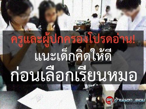 แนะเด็กคิดให้ดีก่อนเลือกเรียนหมอ