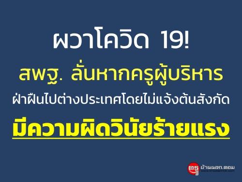 ผวาโควิด 19! สพฐ. ลั่นหากครูผู้บริหารฝ่าฝืนไปต่างประเทศโดยไม่แจ้งต้นสังกัด มีความผิดวินัยร้ายแรง