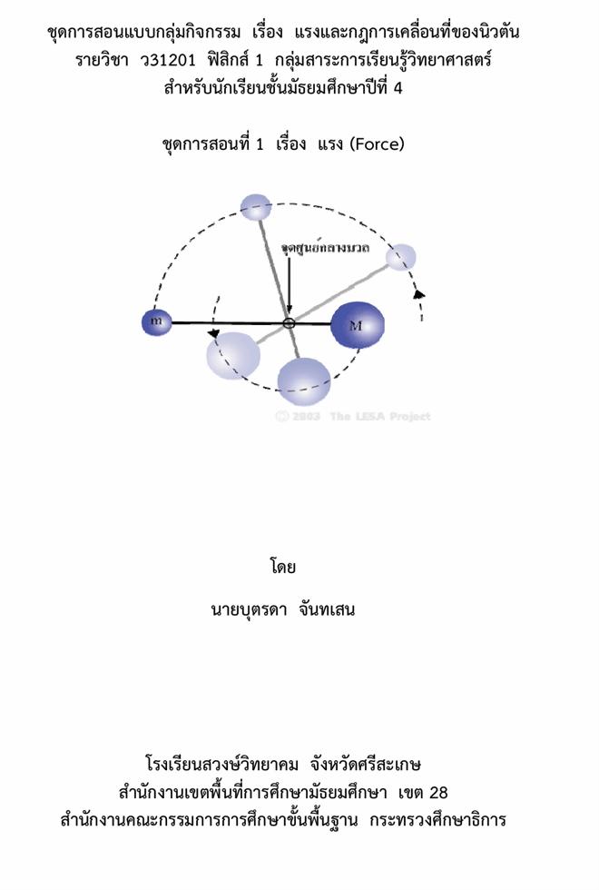 ชุดกิจกรรมการเรียนรู้วิทยาศาสตร์ เรื่อง แรง มวล และกฎการเคลื่อนที่ ผลงานครูธำรงศักดิ์ บุญจรัส