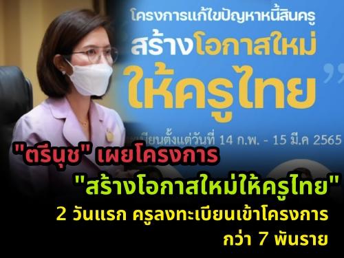"ตรีนุช" เผยโครงการ "สร้างโอกาสใหม่ให้ครูไทย" 2 วันแรก ครูลงทะเบียนเข้าโครงการกว่า 7 พันราย