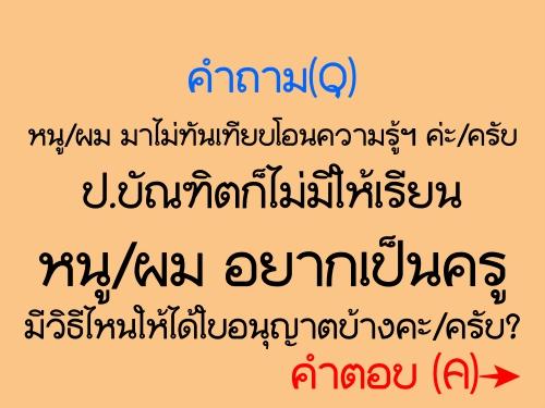 หนู/ผม มาไม่ทันเทียบโอนความรู้ฯ ค่ะ/ครับ ป.บัณฑิตก็ไม่มีให้เรียน หนู/ผม อยากเป็นครู มีวิธีไหนให้ได้ใบอนุญาตบ้างคะ/ครับ?