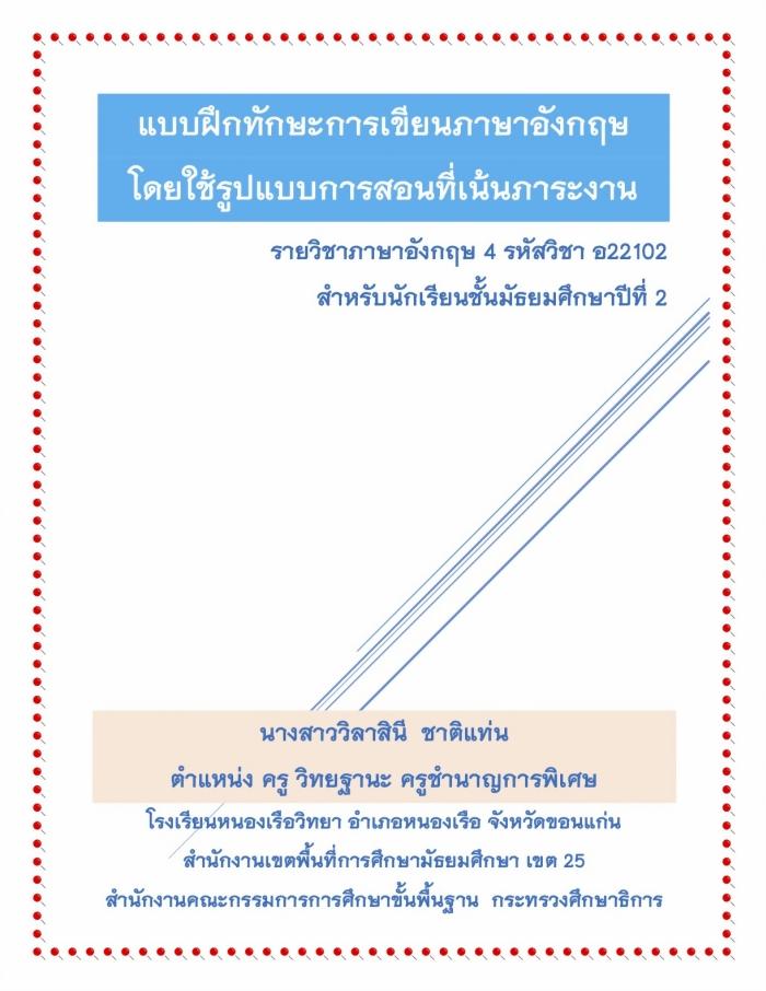 แบบฝึกทักษะการเขียนภาษาอังกฤษโดยใช้รูปแบบการสอนที่เน้นภาระงาน ผลงานครูวิลาสินี ชาติแท่น
