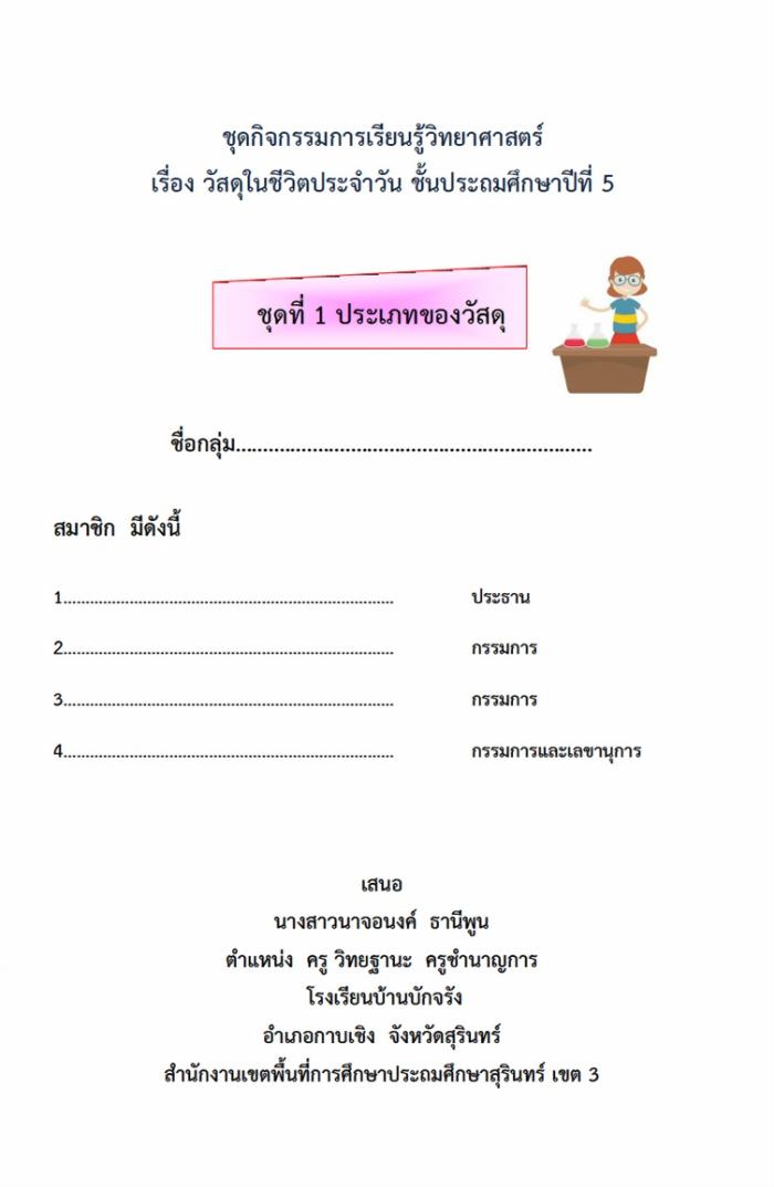 ชุดกิจกรรมการเรียนรู้วิทยาศาสตร์ เรื่อง วัสดุในชีวิตประจำวัน ชั้นประถมศึกษาปีที่ 5 ผลงานครูนาจอนงค์ ธานีพูน