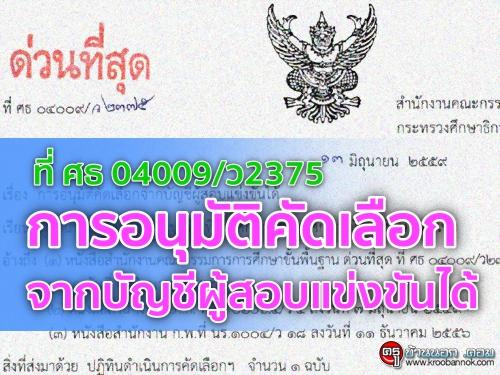 ที่ ศธ 04009/ว2375 การอนุมัติคัดเลือกจากบัญชีผู้สอบแข่งขันได้