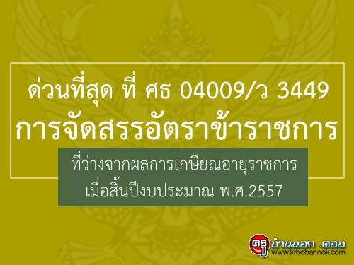 ด่วนที่สุด ที่ ศธ 04009/ว 3449 การจัดสรรอัตราขรก.ที่ว่างจากผลการเกษียณอายุราชการ เมื่อสิ้นปีงบประมาณ พ.ศ.2557