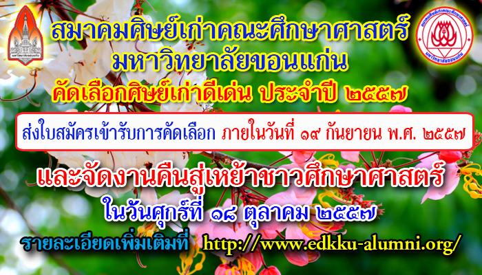 สมาคมศิษย์เก่าคณะศึกษาศาสตร์ มข. ประกาศคัดเลือกศิษย์เก่าดีเด่นประจำปี 2557และจัดงานคืนสู่เหย้าฯ