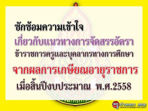 ซักซ้อมความเข้าใจเกี่ยวกับแนวทางการจัดสรรอัตราขรก.ครูฯ จากผลการเกษียณอายุราชการ เมื่อสิ้นปีงปม.พ.ศ.2558