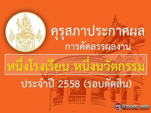 คุรุสภาประกาศผลการคัดสรรผลงานหนึ่งโรงเรียน หนึ่งนวัตกรรม ประจำปี 2558 (รอบตัดสิน)