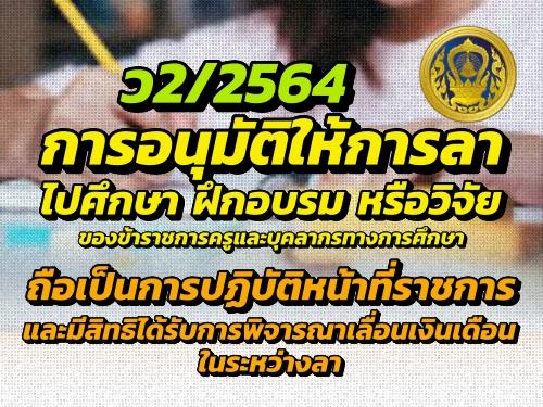ว2/2564 การอนุมัติให้การลาไปศึกษา ฝึกอบรม หรือวิจัย ของขรก.ครูฯ ถือเป็นการปฏิบัติหน้าที่ราชการและมีสิทธิได้รับการพิจารณาเลื่อนเงินเดือนในระหว่างลา