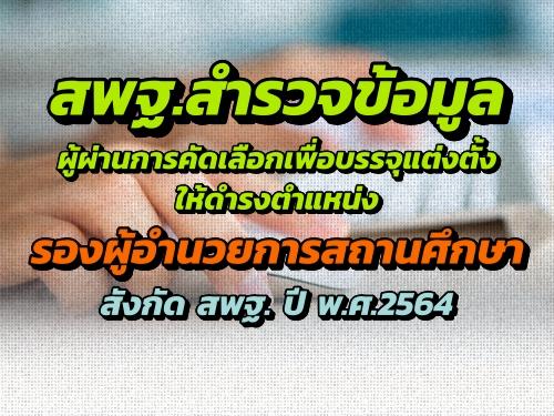 สพฐ.สำรวจข้อมูลผู้ผ่านการคัดเลือกเพื่อบรรจุแต่งตั้งให้ดำรงตำแหน่งรองผู้อำนวยการสถานศึกษา สังกัด สพฐ. ปี พ.ศ.2564