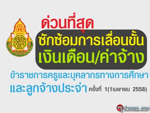 ซักซ้อมการเลื่อนขั้นเงินเดือน/ค่าจ้าง ข้าราชการครูและบุคลากรทางการศึกษา และลูกจ้างประจำ ครั้งที่ 1(1เมษายน 2558)