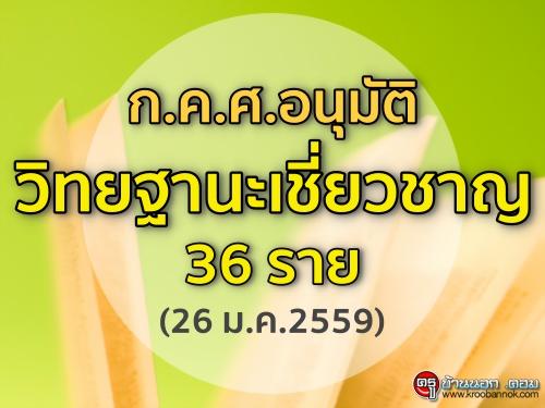 ก.ค.ศ.อนุมัติ"วิทยฐานะเชี่ยวชาญ" 36 ราย (26 ม.ค.2559)