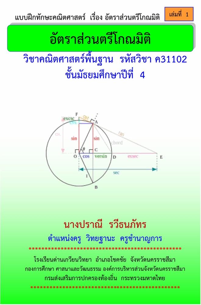 แบบฝึกทักษะคณิตศาสตร์ เรื่อง อัตราส่วนตรีโกณมิติ (ม.4) ผลงานครูปราณี รวีธนภัทร