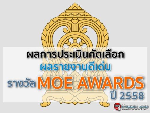 ผลการประเมินคัดเลือกผลรายงานดีเด่น รางวัล MOE AWARDS ปี 2558