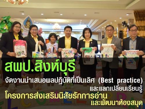 สพป.สิงห์บุรี จัดงานนำเสนอผลปฏิบัติที่เป็นเลิศ (Best practice) และแลกเปลี่ยนเรียนรู้ โครงการส่งเสริมนิสัยรักการอ่านและพัฒนาห้องสมุด