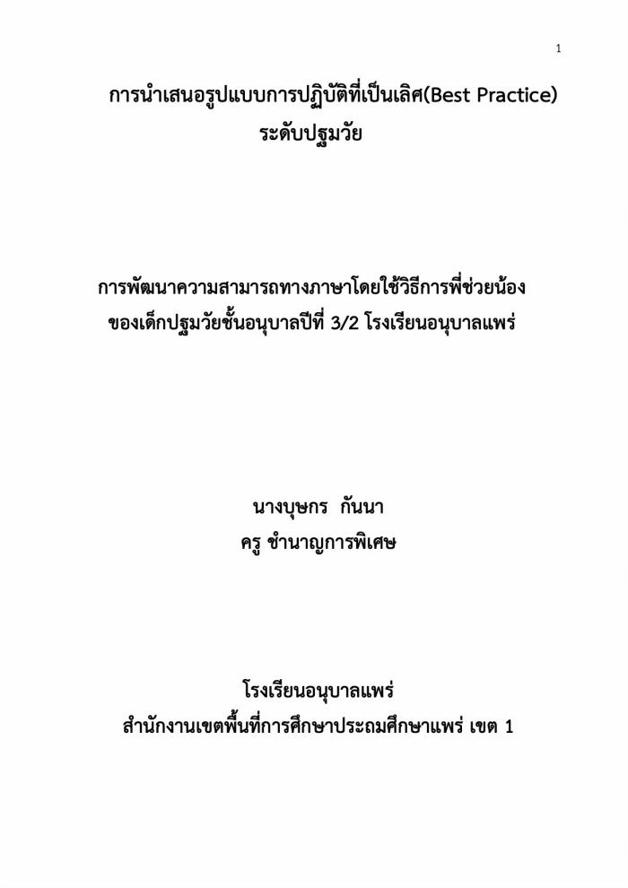 การนําเสนอรูปแบบการปฏิบัติที่เป็นเลิศ (Best Practice) ระดับปฐมวัย ผลงานครูบุษกร กันนา