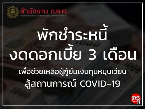 พักชำระหนี้ งดดอกเบี้ย 3 เดือน เพื่อช่วยเหลือผู้กู้ยืมเงินทุนหมุนเวียน สู้สถานการณ์ COVID–19