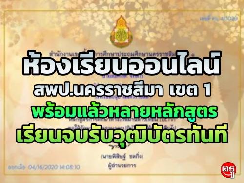 สพป.นครราชสีมา เขต 1 เชิญร่วมกันเรียนรู้ในหลักสูตรครูออนไลน์ ต้านภัยโควิดนายทีน (COVID-19) พร้อมรับวุฒิบัตร ทันที