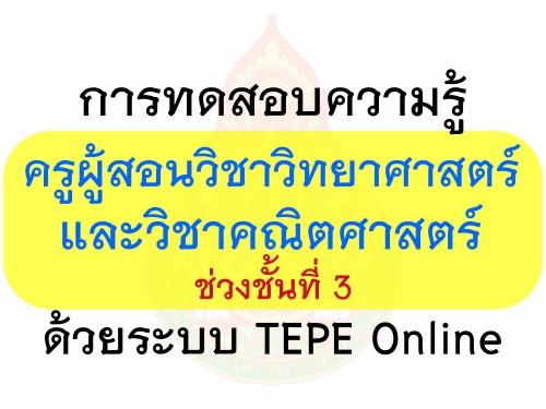 การทดสอบความรู้ครูผู้สอนวิชาวิทยาศาสตร์และวิชาคณิตศาสตร์ ช่วงชั้นที่ 3 ด้วยระบบ TEPE Online