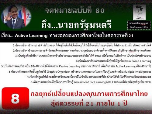 จดหมายฉบับที่ 80 ถึงนายกรัฐมนตรี เรื่อง Active Learning ทางรอดของการศึกษาไทยในศตวรรษที่ 21