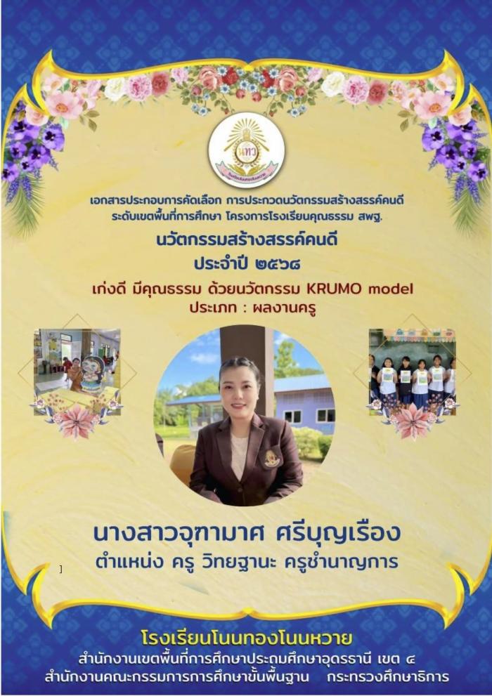 นวัตกรรมสร้างสรรค์คนดี ประจำปี ๒๕๖๘ เก่งดี มีคุณธรรม ด้วยนวัตกรรม KRUMO Model : จุฑามาศ ศรีบุญเรือง
