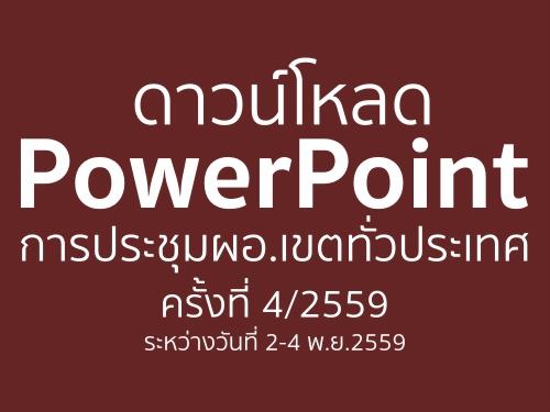 ดาวน์โหลด PowerPoint การประชุมผู้อำนวยการเขตพื้นที่การศึกษาทั่วประเทศ ครั้งที่ 4/2559